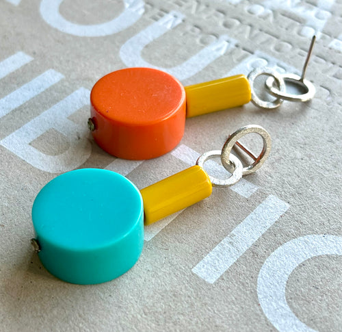 aros plata, cuentas Japón y baquelitas