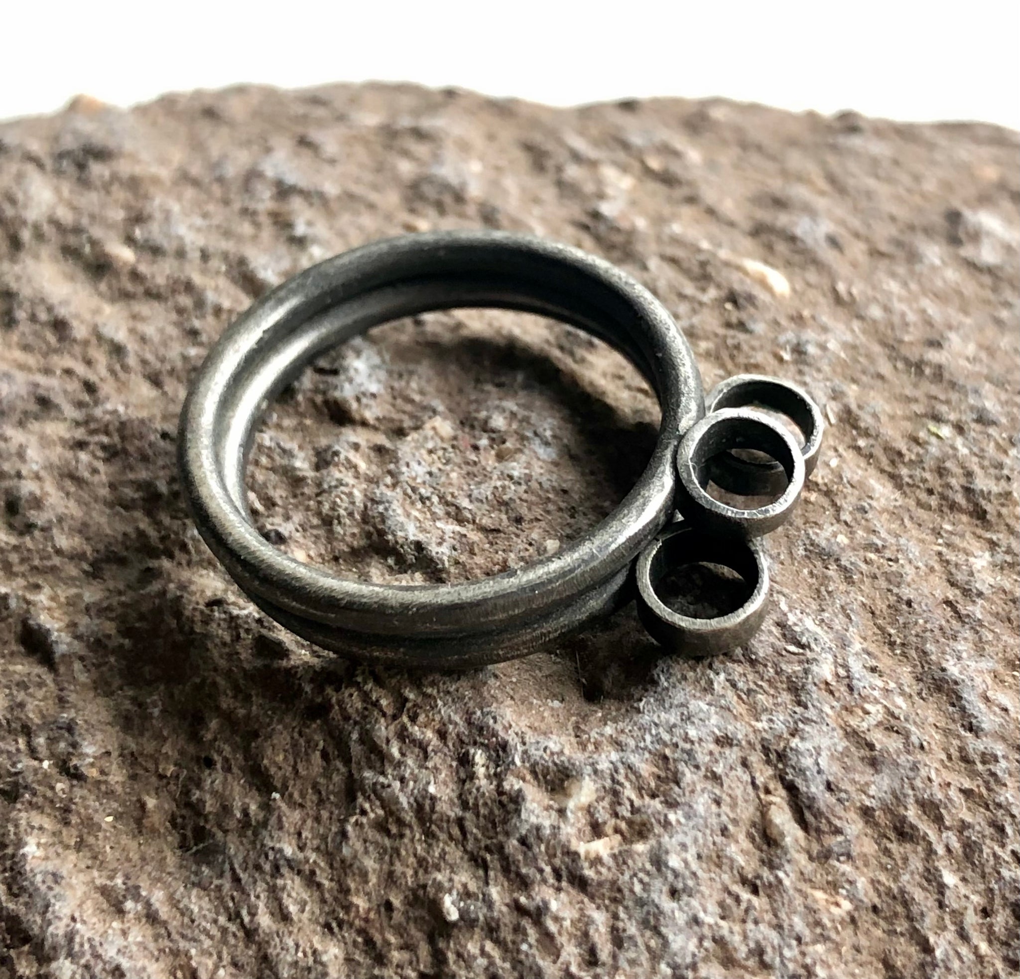 Anillos de plata envejecida (diámetro argollitas 5mm). Talla #11. Se venden juntos.