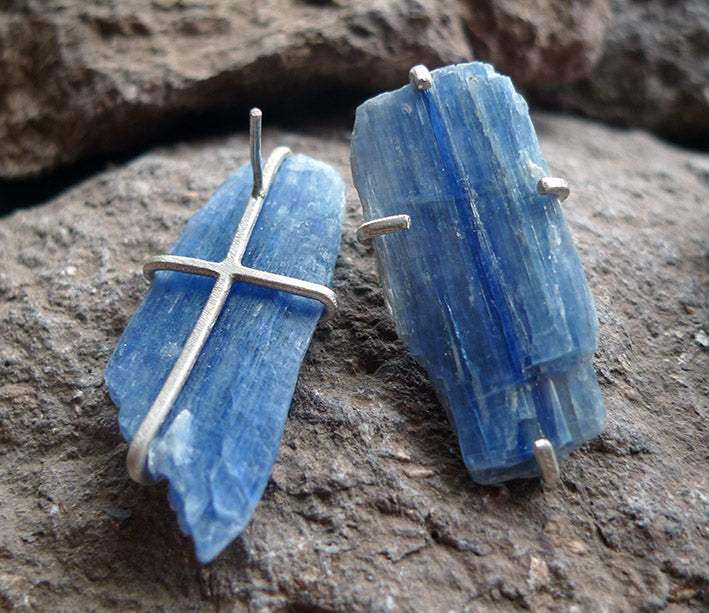 Aros de plata con cianitas brutas (4x 1,7 cm).
